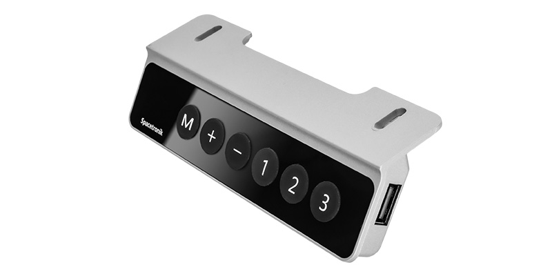 Alle drei neuen SPE-141 Modelle, SPE-221 und SPE-231 sind ausgestattet mit demselben Controller ausgestattet. Stellen Sie die Höhe mit den Tasten "up" und "down" ein und beobachten Sie die aktuelle Position auf der LED-Anzeige. Speichern Sie ausgewählte Elemente und kehren Sie zu ihnen zurück, indem Sie eine der drei programmierbaren Höhenspeichertasten drücken. Mit einer Tastenkombination kann das Steuergerät z. B. gegen die unerwünschte Benutzung durch Kinder gesperrt werden. Der Controller verfügt über ein USB-Ladegerät, mit dem m.in. den Akku in mobilen Geräten aufladen.