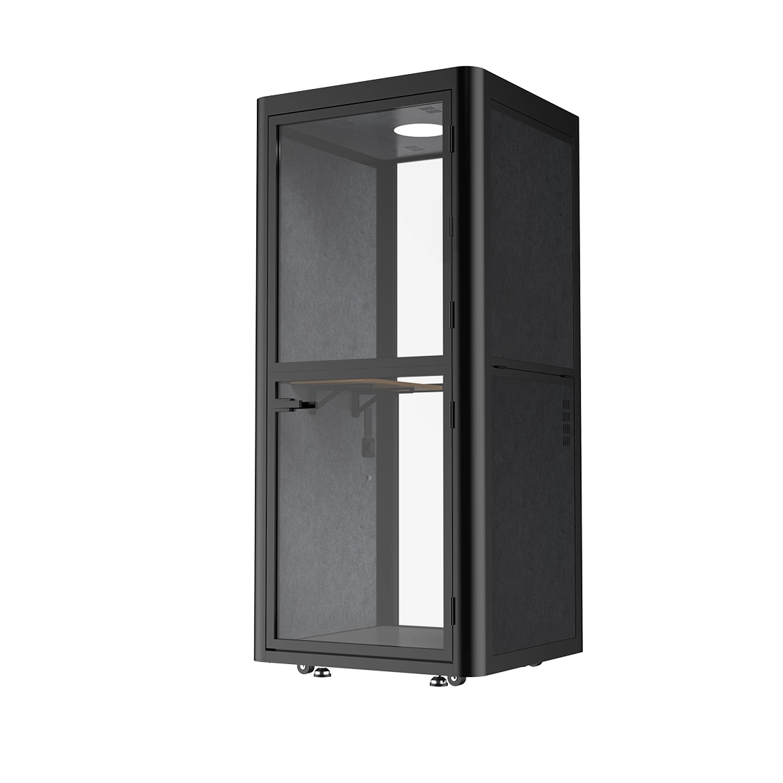 Doch Ruhe ist nicht alles, was Sie brauchen, um komfortabel arbeiten zu können. Deshalb finden Sie im Inneren der Spacetronik SPE-POD01 Akustikkabine einen 680×350 mm großen Klapptisch. Er ist ideal, um Ihren Laptop, Büromaterialien oder einfach nur ein Frühstück oder ein Buch darauf zu platzieren. So können Sie bequem arbeiten. Und damit Sie jederzeit arbeiten können, ist die Kabine mit einem regulierbaren Licht ausgestattet. Mit einem Schalter können Sie die Helligkeit des Lichts in der Kabine ganz einfach einstellen, um die Bedingungen perfekt an Ihre Bedürfnisse anzupassen. Darüber hinaus ist die Akustikkabine von oben mit einem Ventilator ausgestattet, der für eine gute Luftzirkulation sorgt. So können Sie sich auch über einen längeren Zeitraum in der Kabine aufhalten, ohne dass es zu Beeinträchtigungen kommt. Damit es Ihnen an nichts fehlt, gibt es in der Kabine auch USB-Anschlüsse. So können Sie Ihre Geräte ganz einfach aufladen.