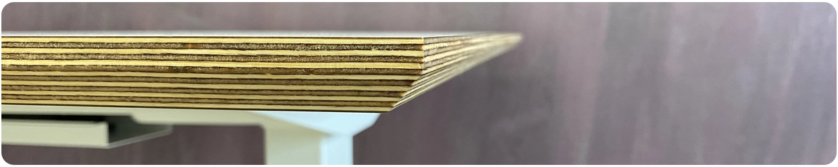 Das Sperrholz ist dank seines schichtweisen Aufbaus sehr stabil. Dank des HPL-Laminats auf der Sperrholzoberfläche ist die Tischplatte über viele Jahre hinweg kratz- und stoßfest.