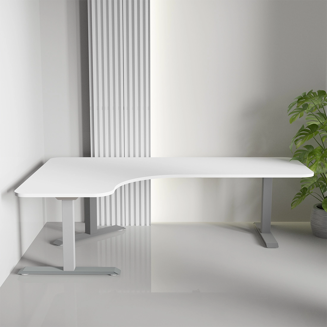 Eine robuste Universal-Tischplatte aus hochwertiger , beidseitig beschichteter 18 mm dicker Platte. Sie hat abgerundete Ecken und ist mit einer ABS-Kante geschützt. Kombiniert mit einem elektrischen Tischgestell ist sie ein ergonomisches und modernes Arbeitsmittel, ob zu Hause oder in einem Büroraum. L-förmige Platte, geeignet für Ecktische.