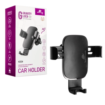 • Autohalterung für die Spacetronik SR-002 Lüftungsdüsen, ausgestattet mit einem Schwerkraftsystem, das sich an die Abmessungen Ihres Telefons anpasst. Der Halter kann um 360° gedreht werden, um Ihren Bedürfnissen gerecht zu werden.
