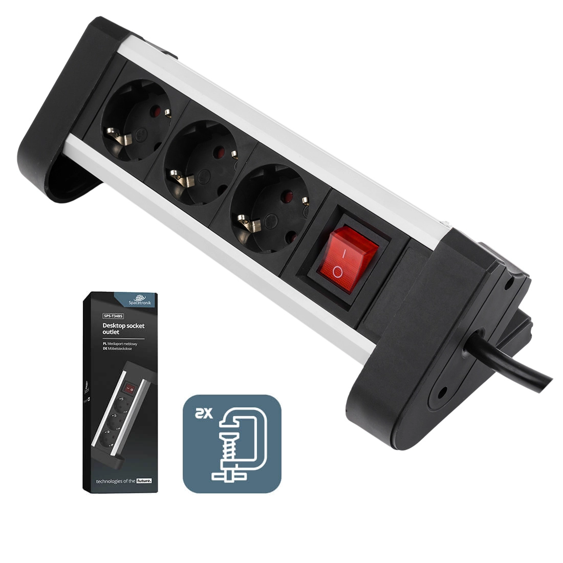 Die Tischsteckdose ist mit 3 Anschlüssen für 110-250 V (Typ Schuko) und einem