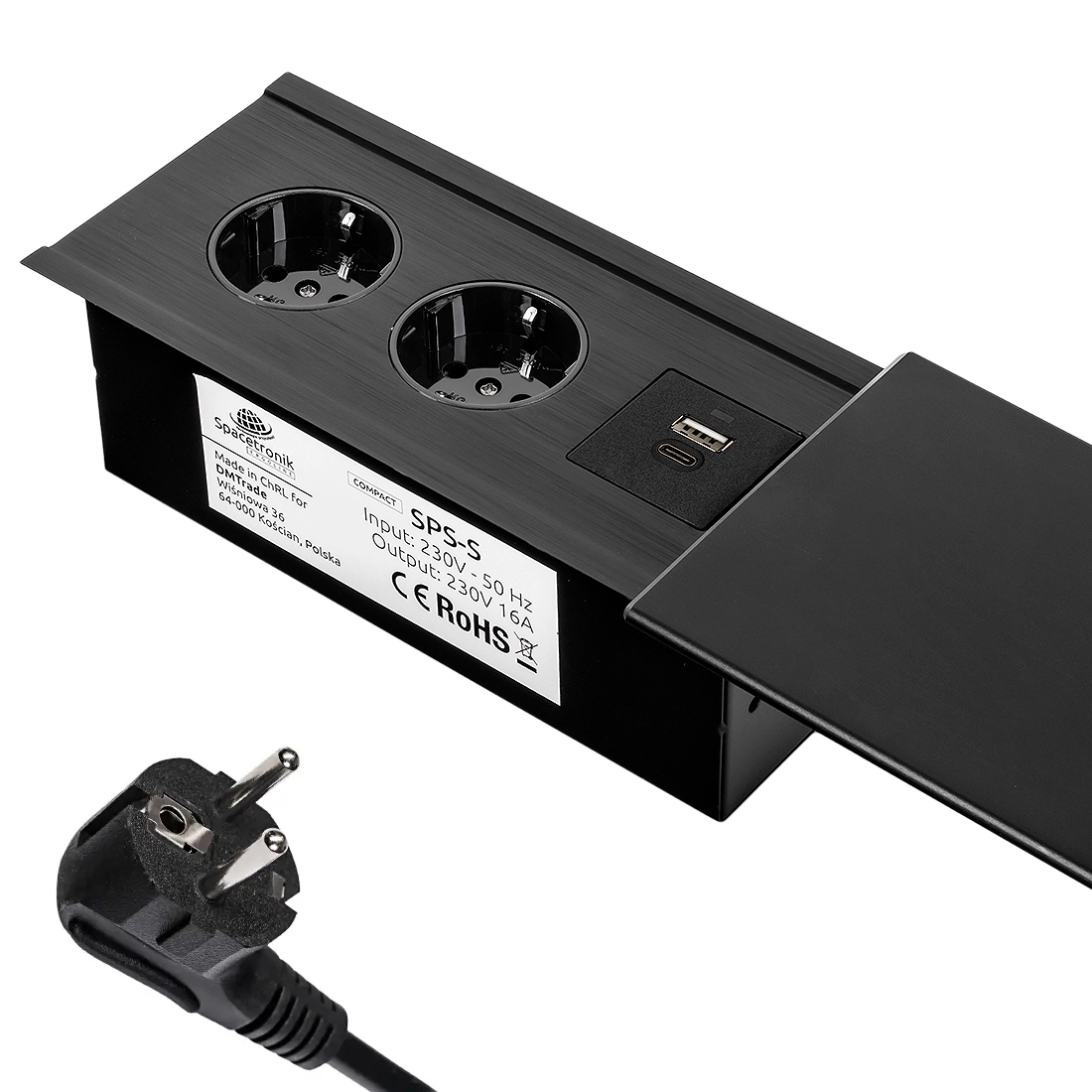 Spacetronik SPS-S24CB V2 Schwarz Schiebetischsteckdose ? Funktionalität und Eleganz