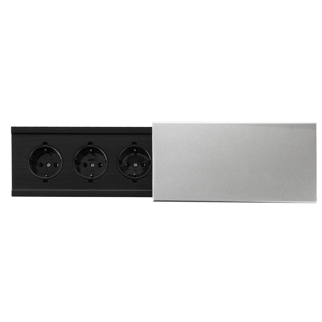Spacetronik Ergoline Tisch-Mediaports sind eine moderne Lösung, die in Geschäften, Ausstellungsräumen, Konferenzräumen, Büros und auch zu Hause eingesetzt wird. Die Spacetronik SPS-S33S V2 COMPACT ist eine kleinere Version des Basismodells. Die Möbelsteckdose ist aus Aluminium und hochwertigen Komponenten gefertigt. Das Produkt ist für die Innenmontage in Schreibtischen, Arbeitsplatten und Tischen konzipiert. Die Einbausteckdose ist mit 3 Schuko-Steckdosen 110-250 V (deutsch/kein Pin) ausgestattet.