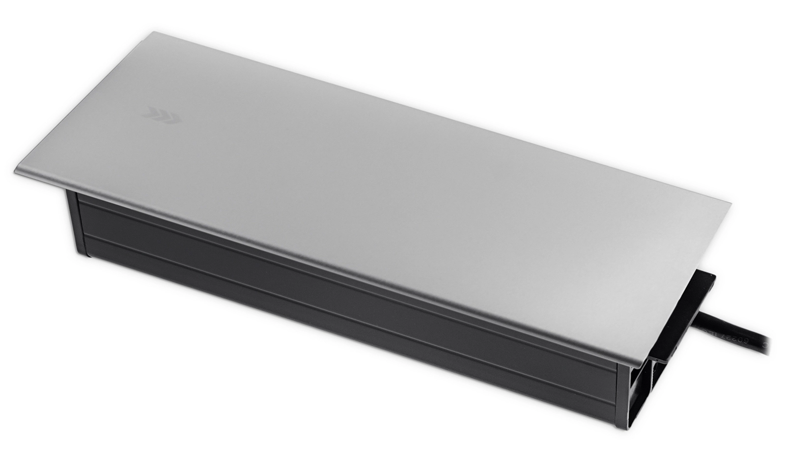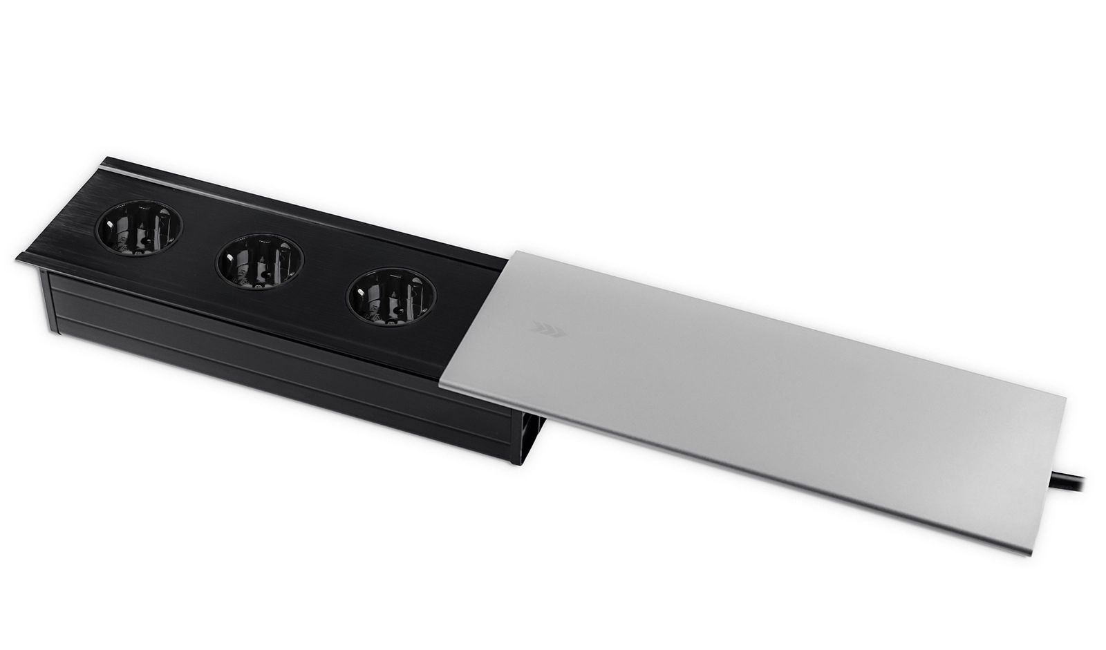 für die Innenmontage in Schreibtischen, Arbeitsplatten und Tischen konzipiert.
