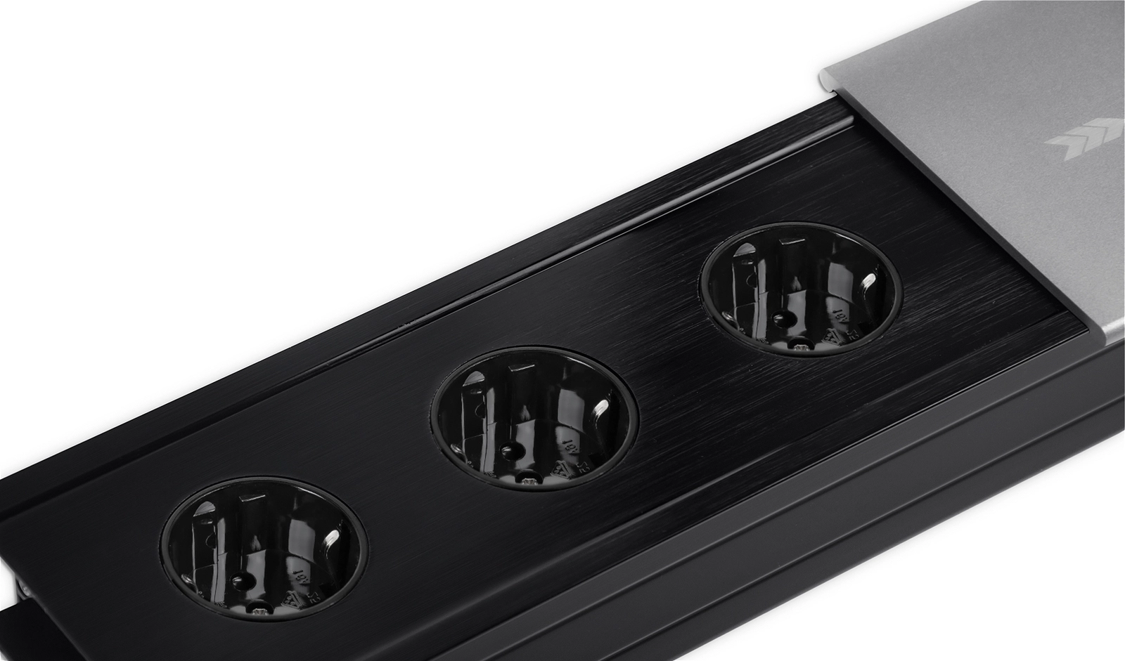 Der Mediaport ist mit 3 Steckdosen 110-250 V (Typ Schuko) ausgestattet.