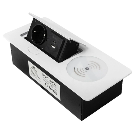 Die Spacetronik SPS-D14W V2 Unterputzsteckdose verfügt über ein duales USB-Ladegerät zum Aufladen Ihres Telefons, Tablets und anderer Geräte.Induktives Ladegerät