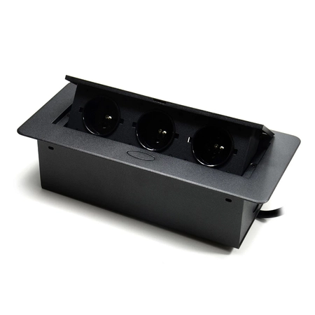 Der Spacetronik mediaport ERGOLINE SPS-D33B ist eine moderne Lösung, die in Geschäften, Ausstellungsräumen, Konferenzräumen, Büros und auch zu Hause eingesetzt wird. Ein Knopfdruck und die Steckdosen öffnen sich sanft. Sie ist aus Aluminium und hochwertigen Komponenten gefertigt. Das Produkt ist für die Innenmontage in Schreibtischen, Arbeitsplatten und Tischen konzipiert, sowohl vertikal als auch horizontal, und ermöglicht den Zugang zu Steckdosen. Der Mediaport ist mit 3 Steckdosen 110-250 V (französischer Typ) ausgestattet.