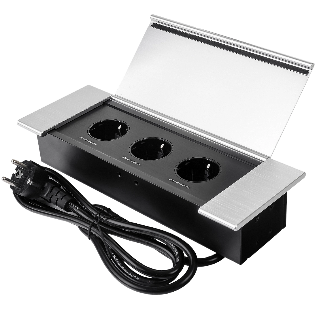 Sie suchen die perfekte Lösung, um Eleganz und Funktionalität in Ihrem Büro, Ausstellungsraum, Konferenzraum oder Zuhause zu verbinden? Die aufklappbare Möbelsteckdose von Spacetronik ist ein vielseitiges Produkt, das sich jeder Herausforderung stellt. Die drei Schuko-Steckdosen eignen sich perfekt als Steckdosenleiste auf einer Arbeitsplatte.