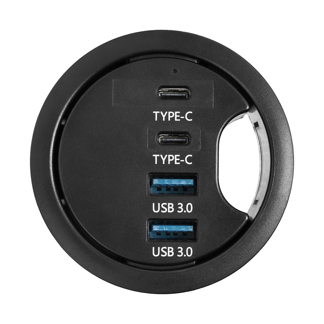 Der Spacetronik ERGOLINE SPS-R1D3B mediaport ist eine moderne Lösung, die in Geschäften, Ausstellungsräumen, Konferenzräumen, Büros und auch zu Hause eingesetzt wird. Er ist aus hochwertigen Komponenten gefertigt. Das Produkt ist für die Inneninstallation in Schreibtischen, Arbeitsplatten und Tischen konzipiert, sowohl vertikal als auch horizontal, und ermöglicht den Zugang zu Steckdosen. Dieser runde Mediaport ist mit einer 110-250-V-Steckdose (Germanium-Typ) und einem dualen USB-Ladegerät, bestehend aus USB-A und USB-C, ausgestattet.