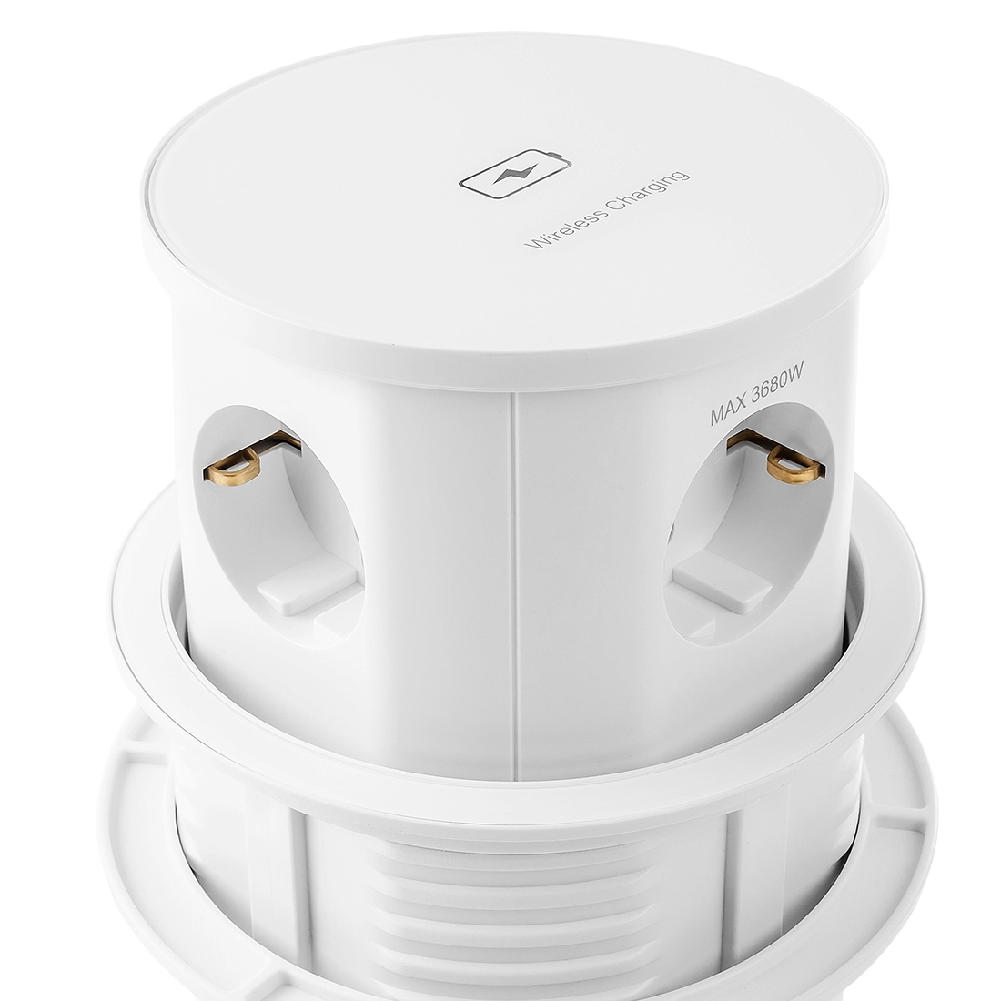 -Praktisches versenkbaresDesign: Drücken Sie leicht auf die Säule und sie wird zusammen mit den Steckdosen versenkt.