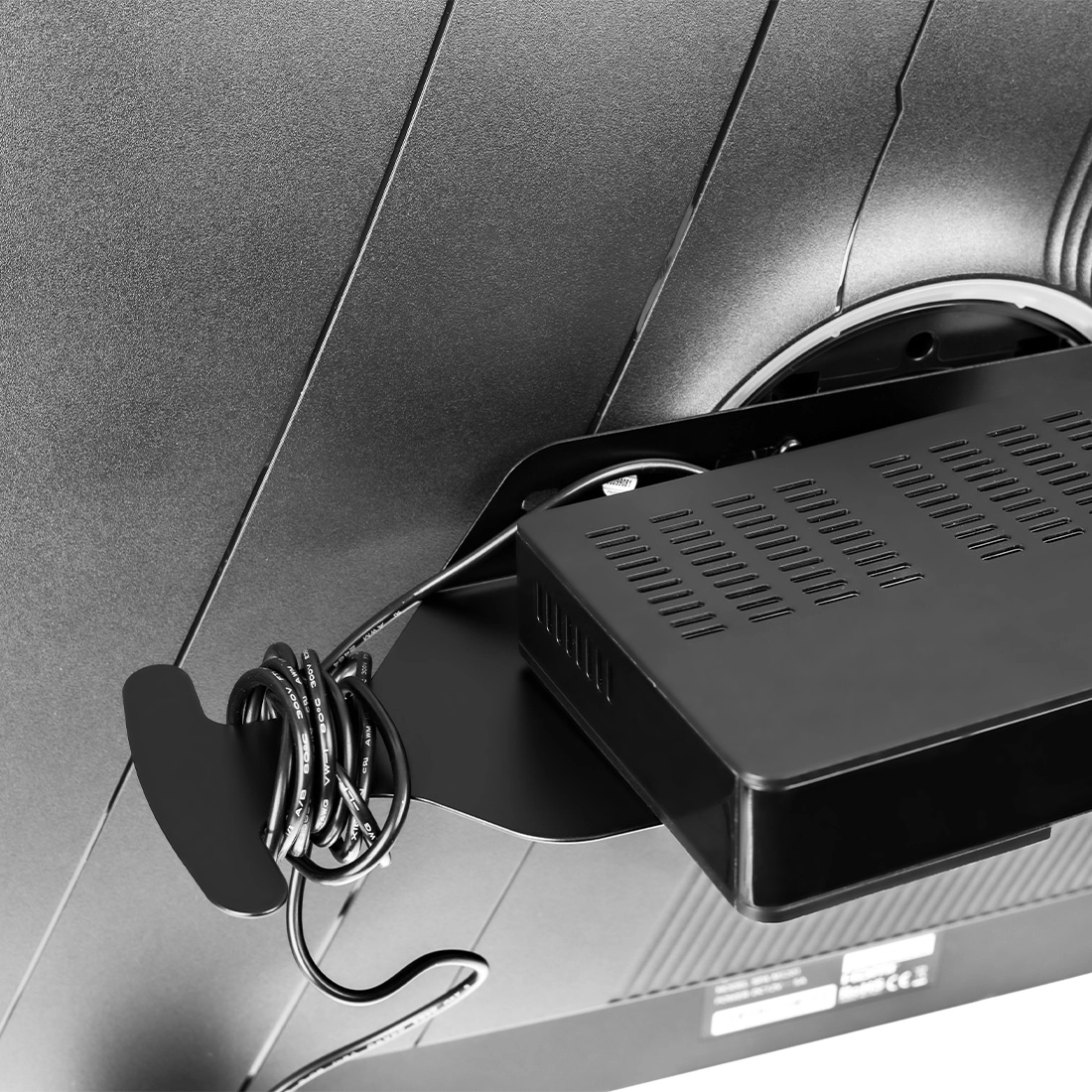 Der Kabel-Organizer wurde für eine schnelle und einfache Installation entwickelt, für die kein Werkzeug erforderlich ist. Mit den unterstützten VESA-Standards 75x75, 100x100 und 200x200 können Sie ihn problemlos an den meisten Fernsehern und Monitoren auf dem Markt anbringen. Dies gewährleistet volle Kompatibilität mit den gängigen Wandhalterungen und erleichtert die ästhetische Organisation der Kabel. Dank des universellen Designs können Sie eine Vielzahl von Kabellängen und -stärken anbringen, was den Organizer äußerst funktionell und vielseitig einsetzbar macht.