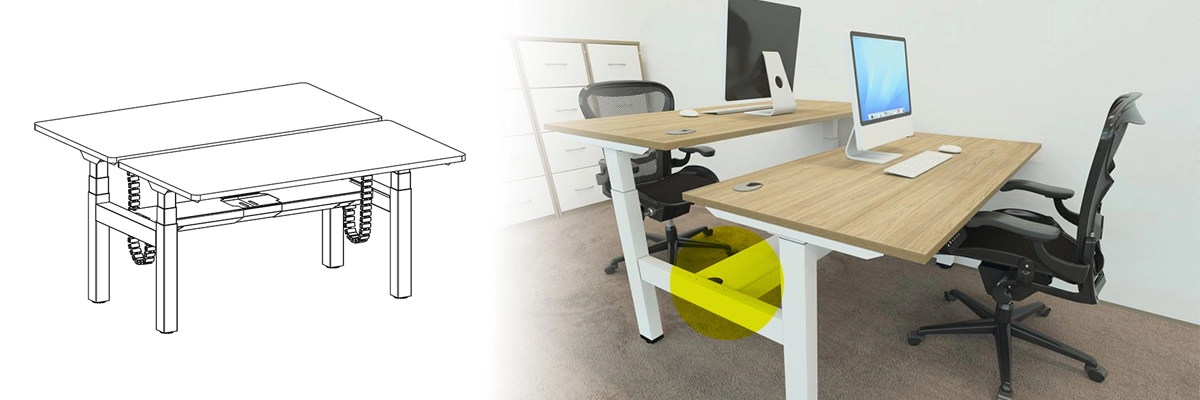 • Zentrales Kabelgitter mit Kabeldornen für Spacetronik-Doppeltischgestelle. Eine ästhetische Ergänzung Ihres Arbeitsplatzes und eine Möglichkeit, Ordnung in Ihre Kabel zu bringen.