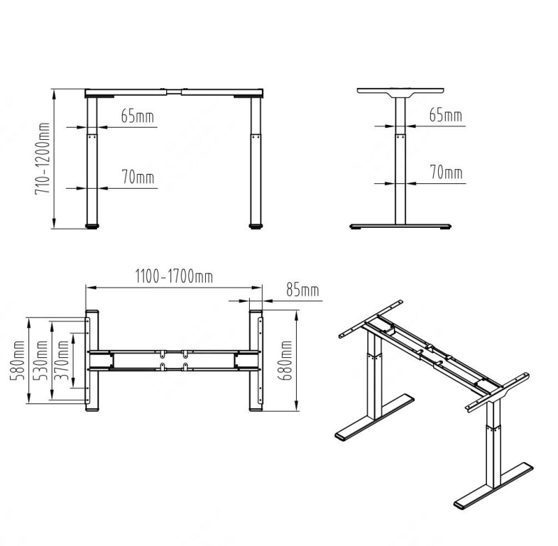 71 - 120 cm - maximale Belastbarkeit 100 kg - empfohlene Tischplattenbreite 1200