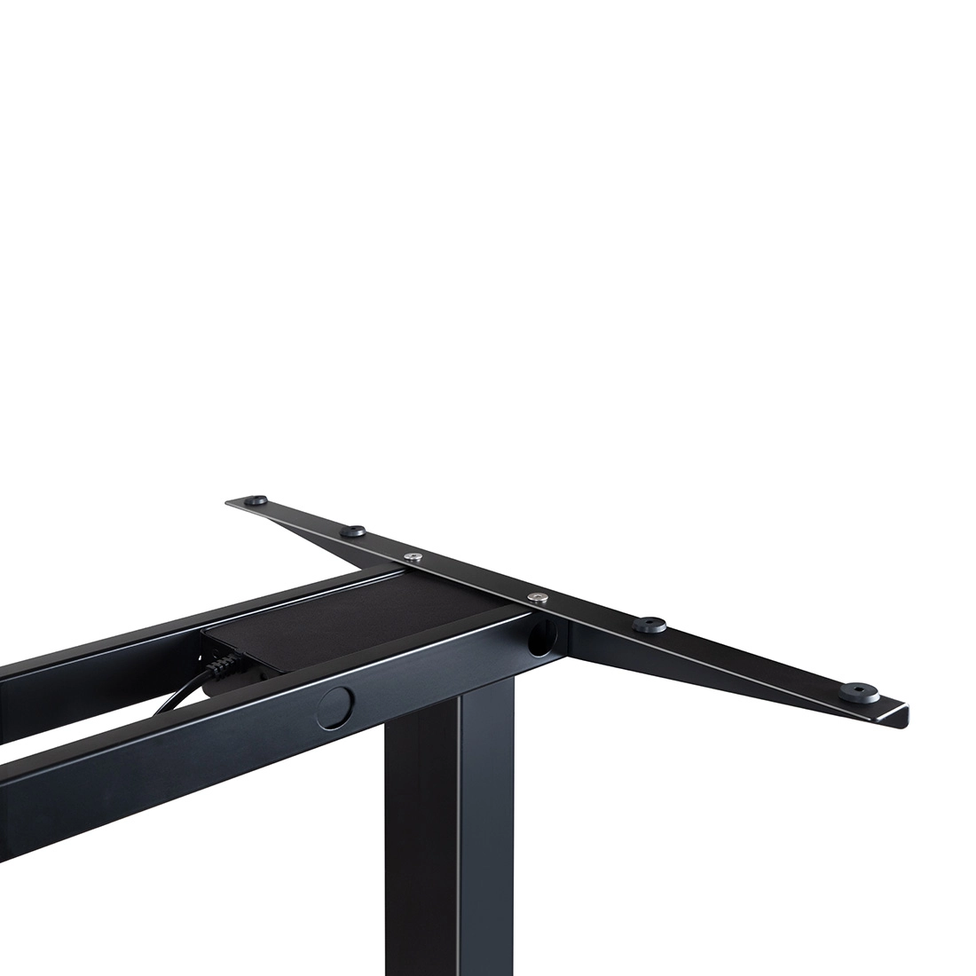 Dank des Einsatzes von zwei Motoren ermöglicht das elektrische Gestell ein sanftes Anheben und Absenken des Tisches mit einem Druck von bis zu 100 Kilogramm. Die hochwertigen Motoren verändern die Position des Tisches mit einer Geschwindigkeit von bis zu 25 mm/Sekunde, wodurch die Tischhöhe schnell und mühelos eingestellt werden kann. Das gesamte System ist sehr leise, mit einem maximalen Geräuschpegel von 45-50 dB.