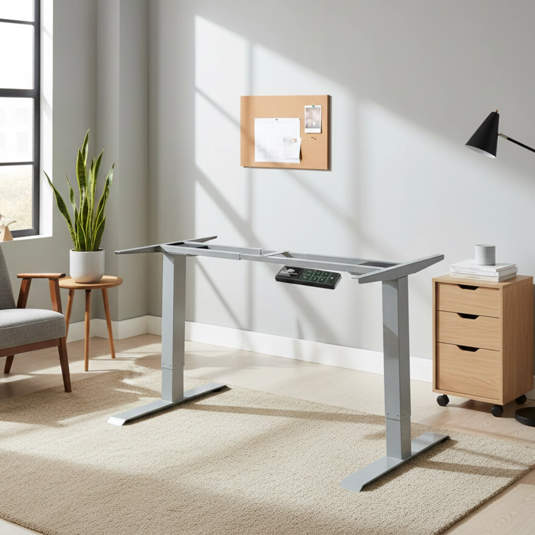 Dank des Einsatzes von zwei Motoren ermöglicht das elektrische Gestell ein sanftes Anheben und Absenken des Tisches mit einem Druck von bis zu 100 Kilogramm. Die hochwertigen Motoren verändern die Position des Tisches mit einer Geschwindigkeit von bis zu 25 mm/Sekunde, wodurch die Tischhöhe schnell und mühelos eingestellt werden kann. Das gesamte System ist sehr leise, mit einem maximalen Geräuschpegel von 45-50 dB.