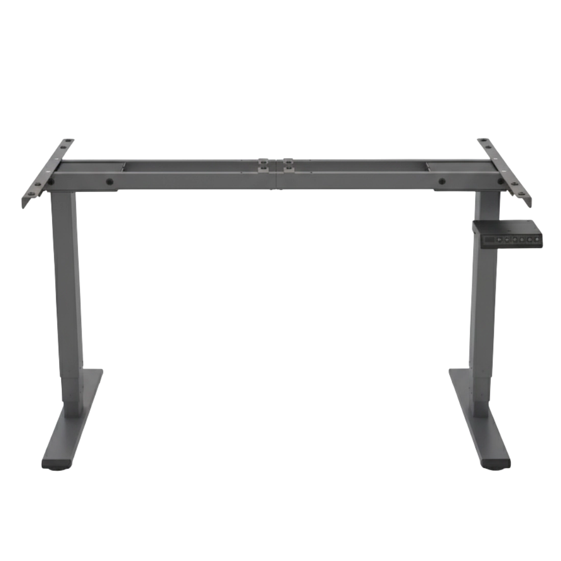 Das elektrische Tischgestell ist mit einer Steuerung mit Funktionen ausgestattet. Stellen Sie die Höhe mit den Tasten "auf" und "ab" ein und beobachten Sie die aktuelle Position auf der LED-Anzeige. Speichern Sie die gewählte Position und kehren Sie in Zukunft zu ihr zurück, indem Sie eine der vier programmierbaren Höhenspeichertasten drücken.