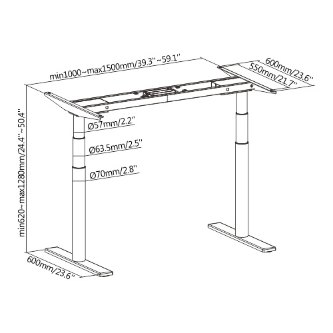 Das entsprechend ausgelegte Gestell des elektrischen Tischgestells mit einer Belastbarkeit von bis zu 125 kg garantiert Stabilität auch in höchster Höhe. Der höhenverstellbare Schreibtisch ermöglicht das so genannte hybride Arbeiten, d.h. abwechselnd im Stehen oder Sitzen zu arbeiten und zu lernen. Die Höhenverstellung ist ideal, wenn mehrere Personen an einem Schreibtisch arbeiten - die Höhe der Tischplatte lässt sich zwischen 62 und 128 cm an die jeweilige Körpergröße anpassen. Der verstellbare elektrische Schreibtisch ist ein Möbelstück, das sich an Sie anpasst!