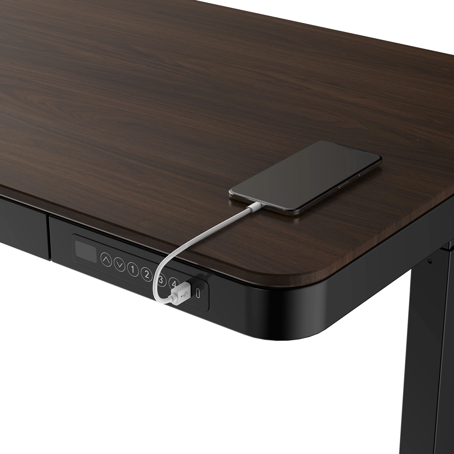 - Steuerung: Hochentwickelte Steuerung mit Display, 4 Positionsspeichertasten, 2 USB-Anschlüssen (USB-A, USB-C) und "Auf"- und "Ab"-Tasten