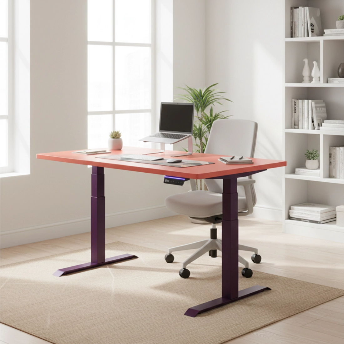 Das Spacetronik SPE-232O in Lila ist ein elektrisches Tischgestell, auf dem Sie einen echten ergonomischen Schreibtisch mit elektrischer Verstellung aufbauen können. Das elektrische Gestell hat zwei Motoren für eine schnelle und sanfte Höhenverstellung des Tisches. Die Verstellung gibt ein Gefühl von Komfort und die Möglichkeit, die individuellen Bedürfnisse des Mitarbeiters anzupassen, und kann auch die Arbeitseffizienz beeinflussen. Ein elektrisch verstellbarer Schreibtisch ermöglicht es, jeden Tag im Stehen zu arbeiten, was sich zum Beispiel positiv auf den Kreislauf auswirkt und das Risiko einer Überlastung verringert. Im Stehen ist es auch viel einfacher, eine korrekte Haltung beizubehalten - was unser Rücken uns in erster Linie danken wird. Die Bedieneinheit ist mit einem modernen OLED-Display ausgestattet und die Tasten sind in mehreren wechselnden Farben hintergrundbeleuchtet.