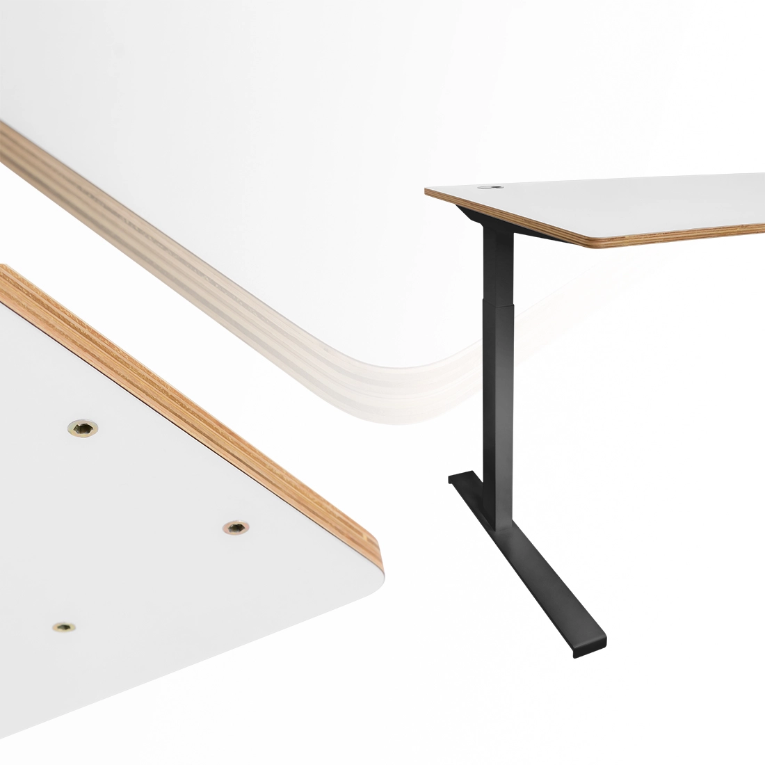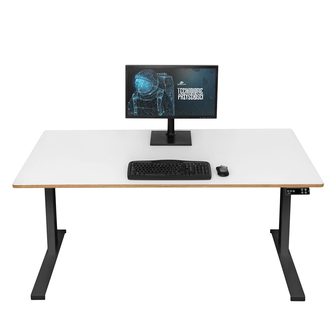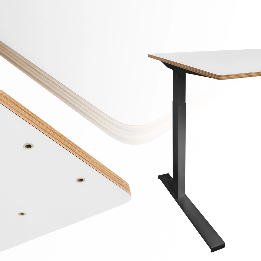 • Schaffen Sie einen ergonomischen Arbeitsplatz. Ein höhenverstellbarer Schreibtisch (700-1200 mm), an dem Sie im Stehen oder Sitzen arbeiten können. Platte aus massivem Sperrholz in Weiß. Verstellgeschwindigkeit 32 mm/Sek. Schwarzes Gestell.