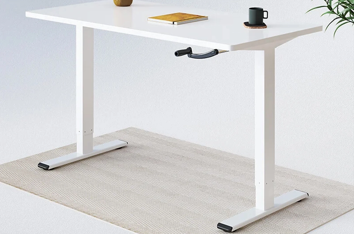 Schaffen Sie einen ergonomischen und modernen Arbeitsplatz mit dem Spacetronik SPE-114MW Kurbel-Tischgestell (weiß)