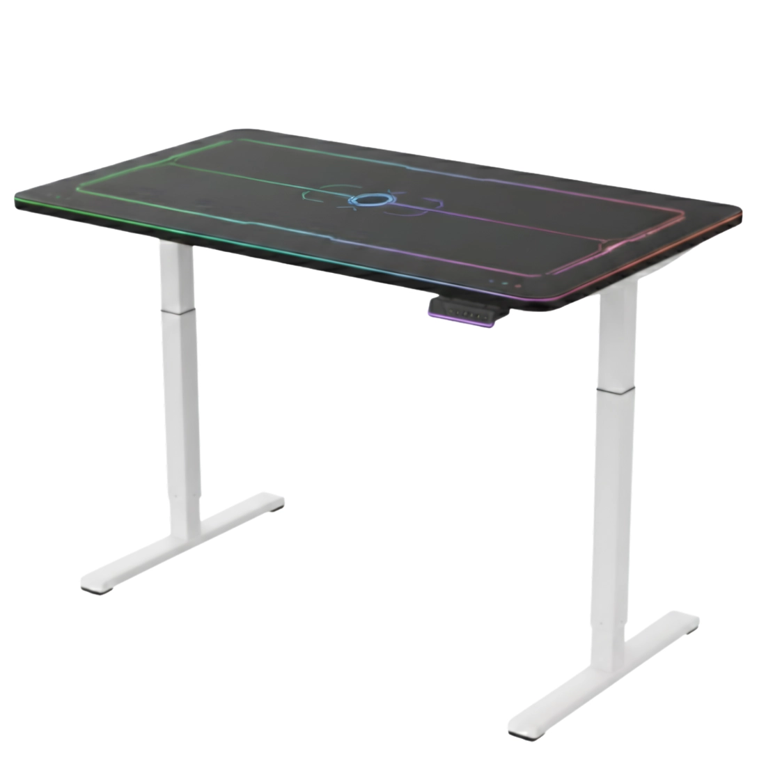 Stelaż elektrycznie regulowany Spacetronik SPE-222OB został wyposażony w kontroler z udogodnieniami. Dokonuj zmian, zapisuj ustawienia na czytelnym wyświetlaczu OLED. Reguluj wysokość za pomocą przycisków "góra" oraz "dół" i obserwuj aktualną pozycję na ekranie OLED. Biurko umożliwia blokadę kontrolera np. przed niepożądanym użyciem przez dzieci. Przestrzeń wokół przycisków jest podświetlania kilkoma kolorami naprzemiennie lub do wyboru spośród 7 kolorów.