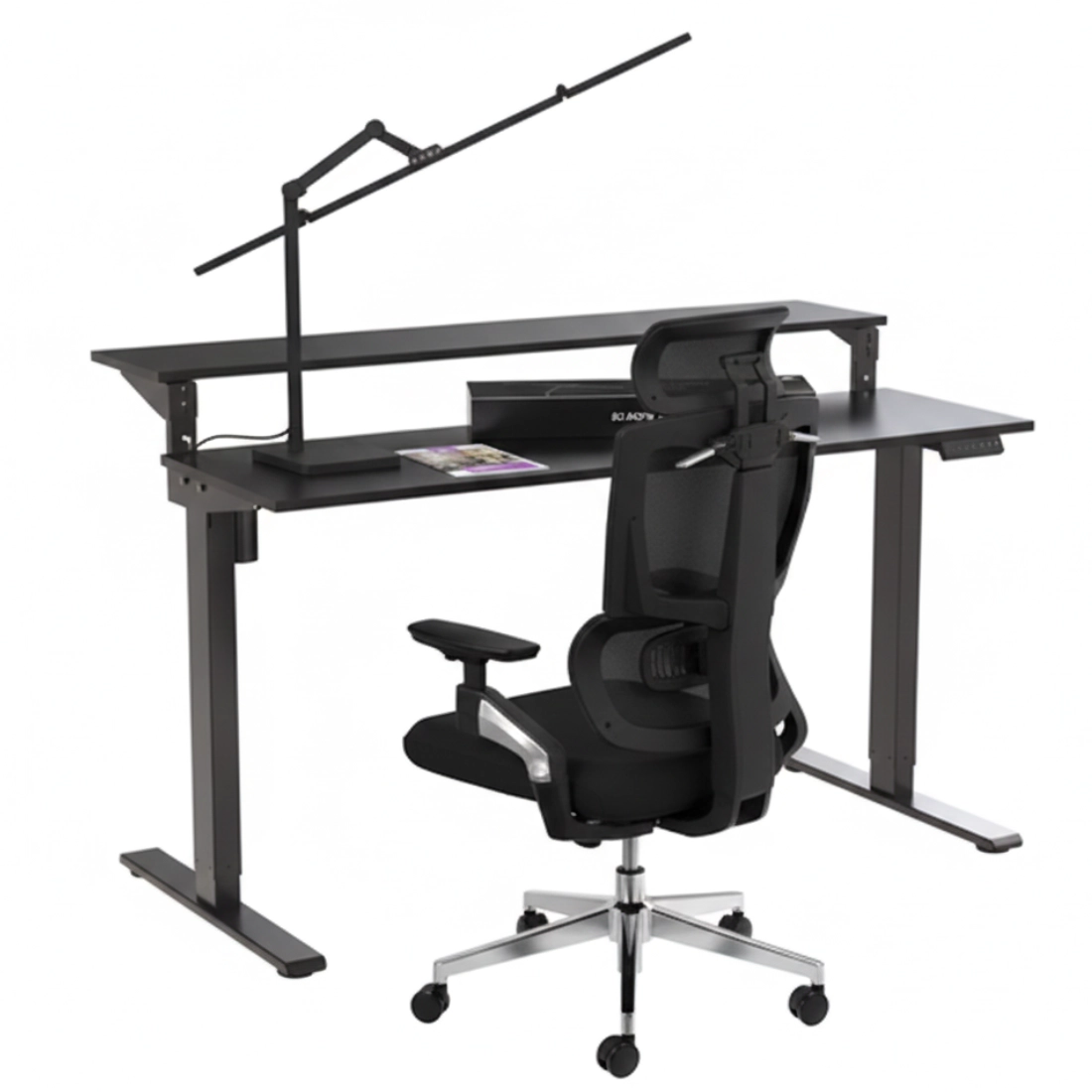 Elektrischer Schreibtisch SPE-O133BB Moris 140x40 cm + 140x30 cm (schwarzer Rahmen + schwarze Platte)