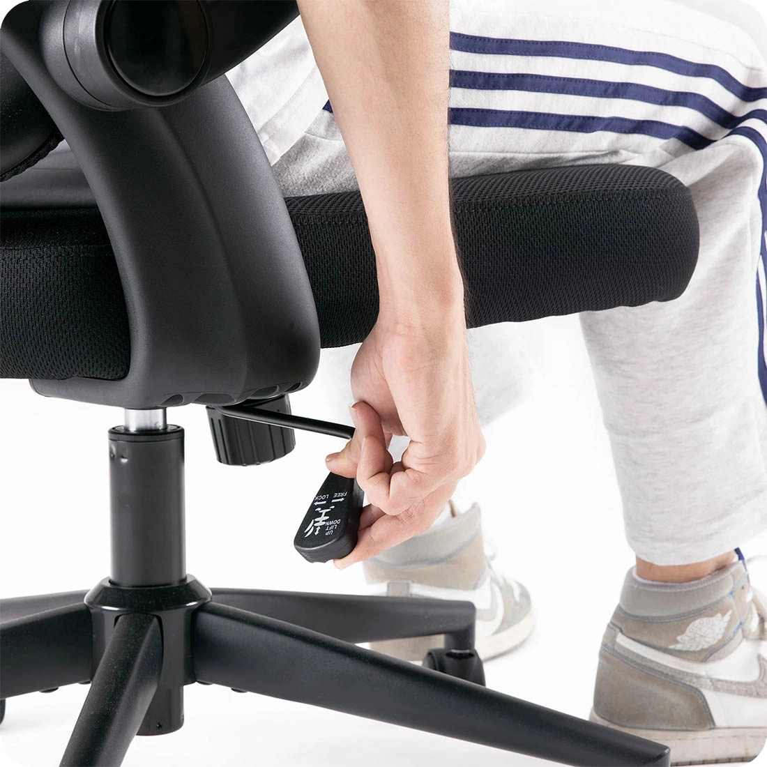 Stühle und Sessel für das Büro können sich erheblich voneinander unterscheiden. Obwohl sie sich im Aussehen ähneln, kann ihre Funktionalität ein wenig anders sein. Mit einem einzigen Hebel unter der Sitzfläche können Sie sowohl die Höhe als auch die Neigung des Bürostuhls einstellen. Sie können den Stuhl sehr schnell und einfach an Ihre Bedürfnisse anpassen, ohne aufstehen zu müssen. Die Höhe kann zwischen 117 und 126 cm eingestellt werden. Die Neigung hingegen liegt zwischen 110° und 130°.