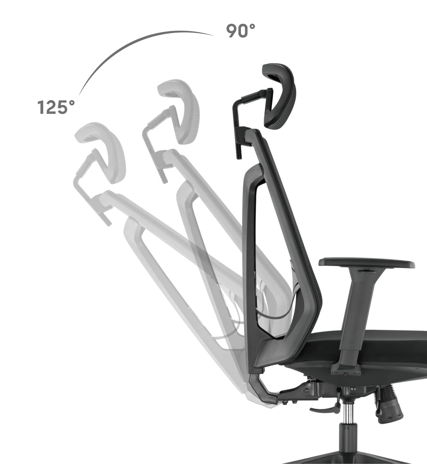 Ermöglicht die Einstellung des Neigungswinkels der Rückenlehne, um sie an Ihre Vorlieben und Ihren Komfort anzupassen. Sie können die Rückenlehne um bis zu 125 Grad verstellen und in der gewünschten Position arretieren.