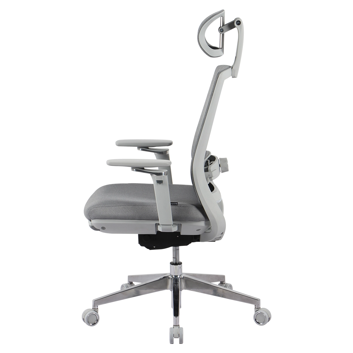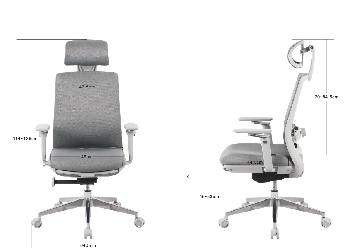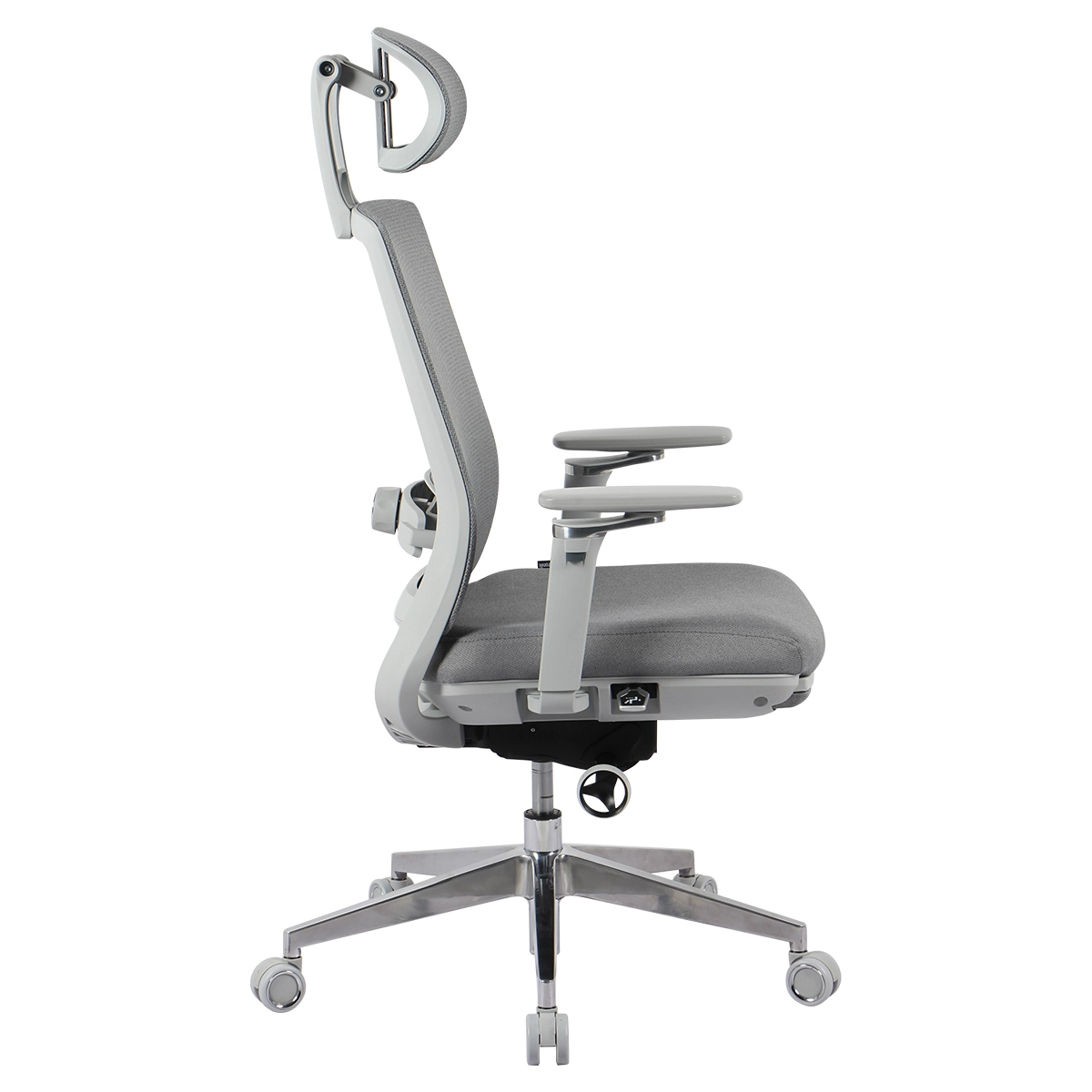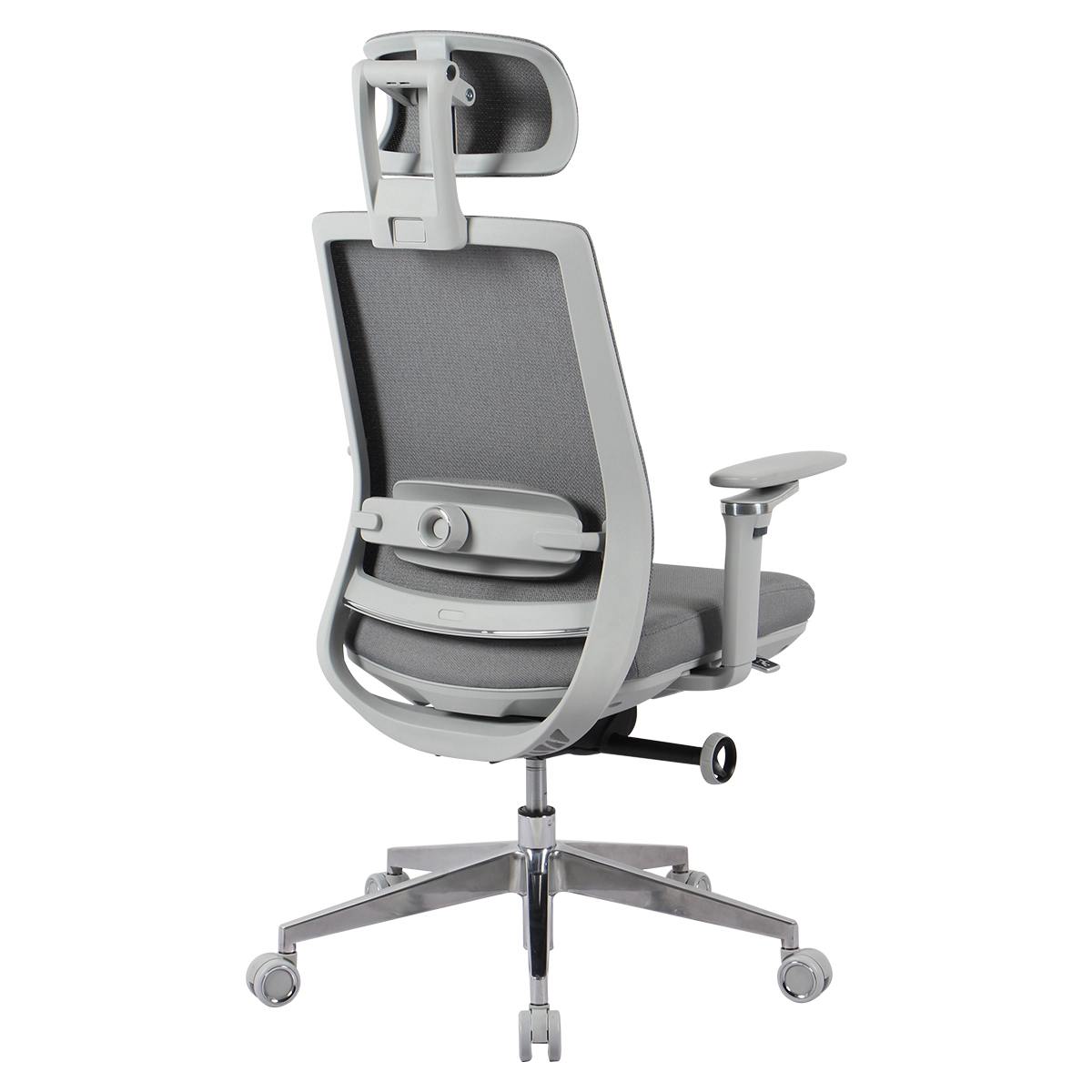 Die verstellbare Kopfstütze in einem Bürostuhl ist ein wichtiges Merkmal, das den Sitzkomfort und die Ergonomie deutlich erhöht. Spacetronik Albert ist mit einer in 3 Stufen verstellbaren Kopfstütze ausgestattet, die es ermöglicht, die Kopf- und Nackenstütze an die individuellen Bedürfnisse des Benutzers anzupassen und so Muskelverspannungen zu reduzieren und Nackenschmerzen vorzubeugen. Bei diesem Stuhl können sowohl die Höhe der Kopfstütze als auch ihr Winkel eingestellt werden .