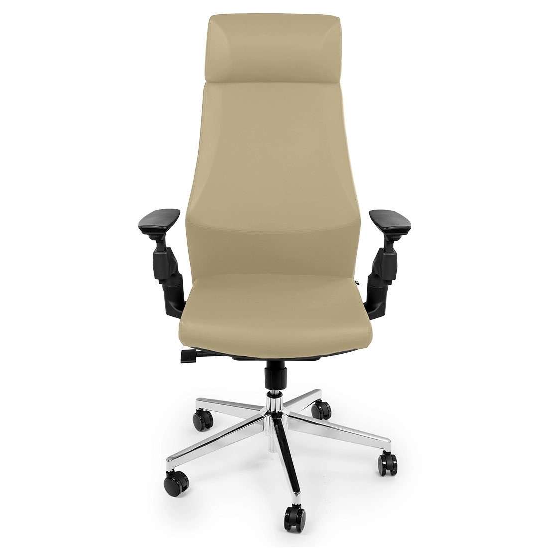 Die hohe Qualität der Komponenten, aus denen der Schreibtischsessel gefertigt ist, führt zu einer repräsentativen Optik. Der Sessel ist aus PU-Leder gefertigt und wirkt dadurch wesentlich eleganter. Die Sitzfläche ist mit PU-Leder gepolstert und mit hochdichtem Schaumstoff unterlegt.
