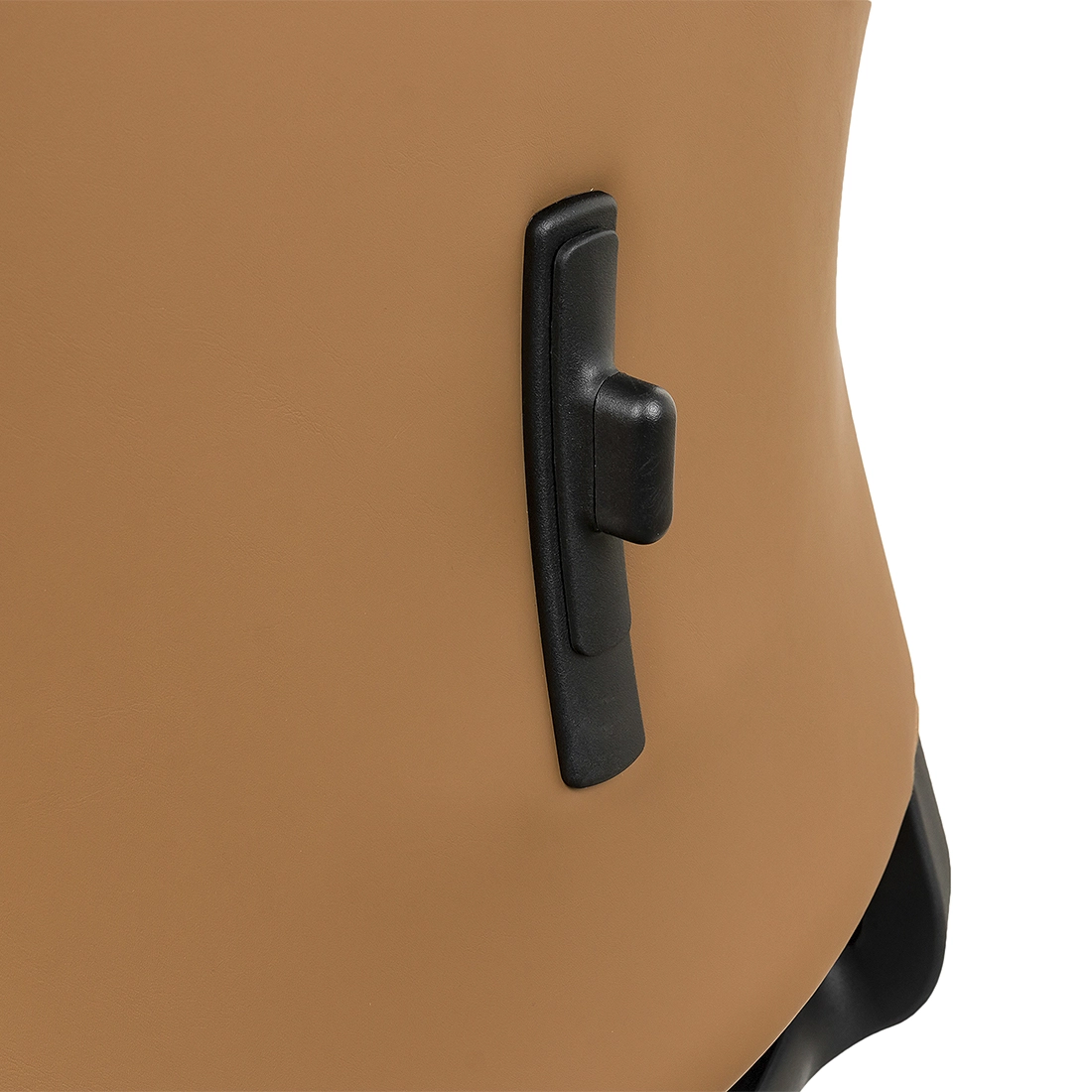 Die hohe Qualität der für die Herstellung des Schreibtischstuhls verwendeten Komponenten führt zu einer repräsentativen Optik. Die Sitzfläche ist mit einem angenehmen Stoff gepolstert und mit einem hochdichten Schaumstoff unterlegt. Die Ellbogen ruhen auf ergonomischen Armlehnen. Mit seinem eleganten braunen PU-Leder passt dieser hochwertige Stuhl perfekt zu Ihrem Business-Stil. Die modische und ergonomische Form des Bürostuhls sorgt dafür, dass Sie auch über viele Stunden hinweg bequem sitzen können.