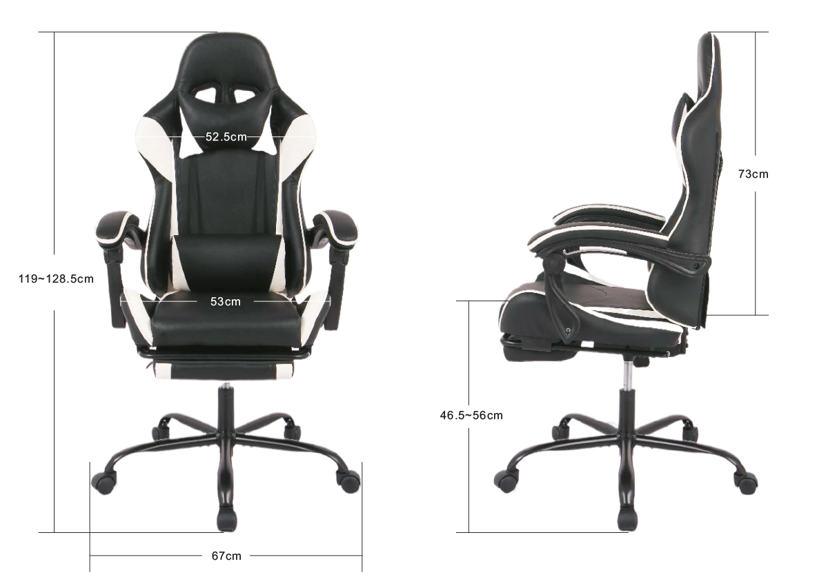 Der Sessel ist mit einer ausziehbaren Fußstütze ausgestattet, die dem Sessel ein zusätzliches Element von Luxus und Komfort verleiht. Die Fußstütze ermöglicht es dem Benutzer, die Beine bequem auszustrecken und sich während einer Spiel- oder Arbeitssitzung zu entspannen. Diese Funktion macht den Sessel noch vielseitiger, da er sich an verschiedene Vorlieben anpasst und nach einem anstrengenden Tag volle Entspannung bietet.
