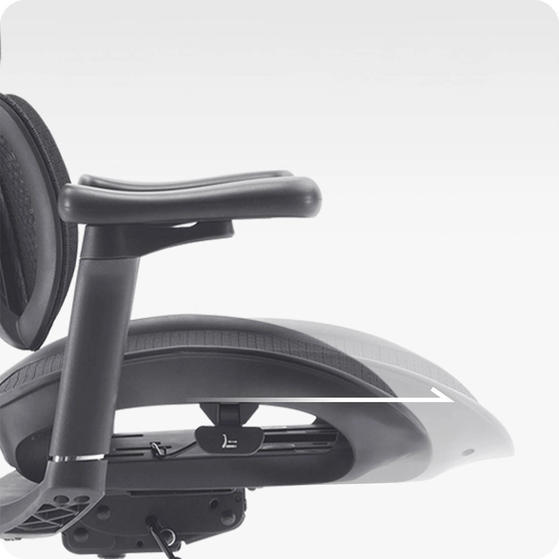Wir alle sind unterschiedlich. Wir haben unterschiedliche Körpergrößen, Körperstrukturen und Proportionen. Wie können Sie also sicher sein, dass der Stuhl, den Sie kaufen, vielen Menschen passt? Dass er auch zu Ihnen passt? Ein entsprechend geformter Sitz mit großen Abmessungen kann helfen. So kann sich jeder hineinsetzen, ohne Druck oder Belastung zu spüren. Er ist 51 cm breit und 11,5 cm hoch. Außerdem ist er verstellbar, so dass sowohl die Höhe des Sitzes als auch seine Position auf Ihre Bedürfnisse abgestimmt werden können. Die Höhenverstellung liegt im Bereich von: 44 - 52 cm. In der Vorder-Rücken-Achse hingegen können Sie ihn um 2,5 cm verstellen. Darüber hinaus wurde die Form des Sitzes in eine "Wasserfall"-Form gebracht. Dadurch wird der Druck auf die Oberschenkel und die Hüften verringert, was sich positiv auf die Blutzirkulation auswirkt.