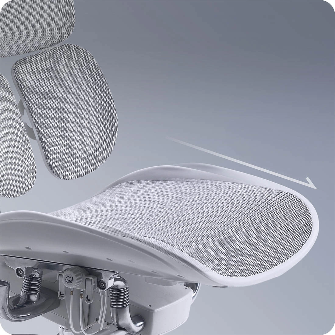 Der ergonomische Stuhl Spacetronik SPRINGLE 66 ist mit einem fortschrittlichen Federungssystem im Sitz ausgestattet. Es besteht aus 4 effektiven, stoßabsorbierenden Federn. Sie neutralisieren effektiv die Spannung beim Sitzen. Das Federungssystem passt sich dynamisch und in Echtzeit an jede Positionsveränderung an und sorgt so für konstanten Komfort. So passt sich die Sitzhöhe stets sanft an, so dass Sie automatisch eine bequeme Position einnehmen können.