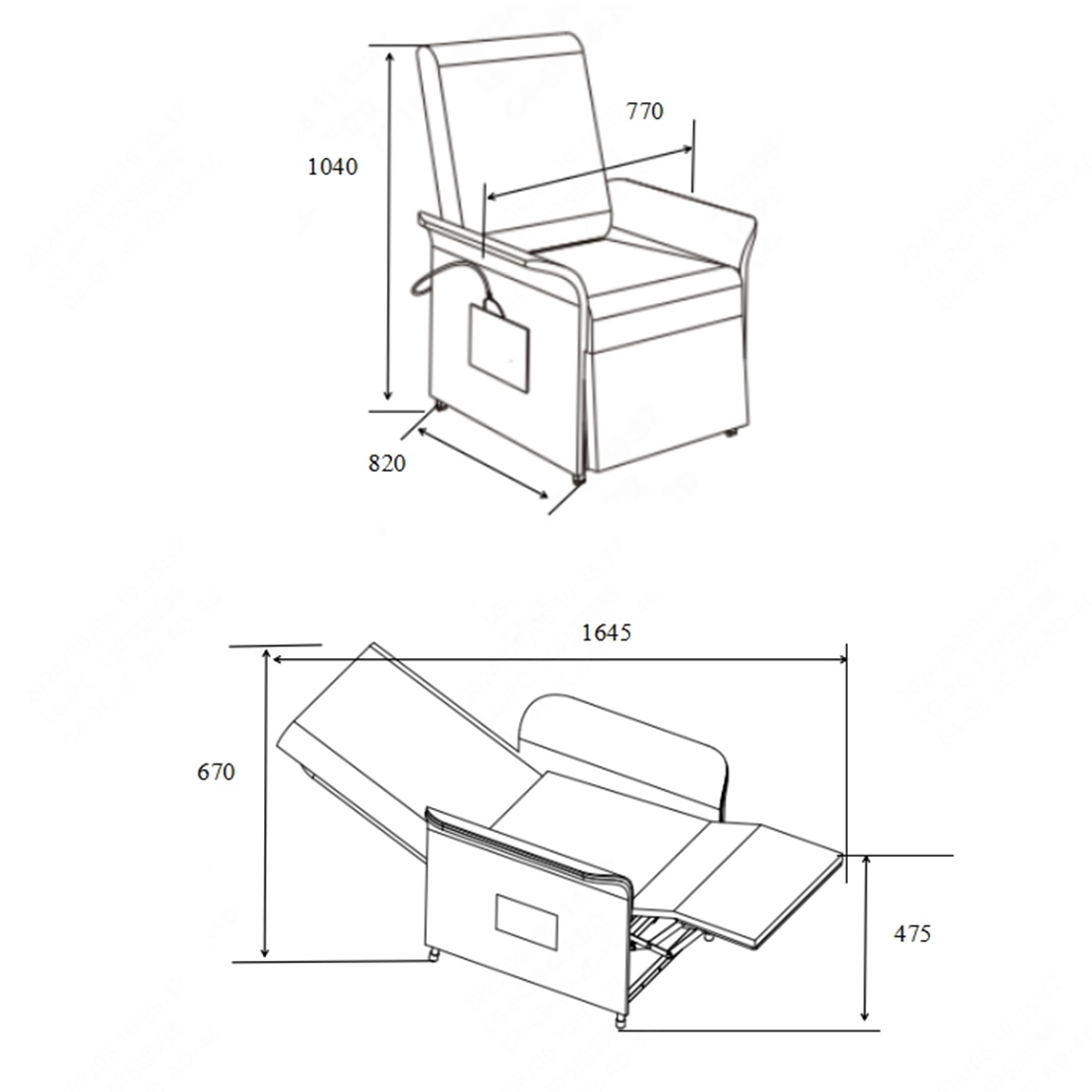 - Verstellbarer Winkel der Rückenlehne: 105-155°,