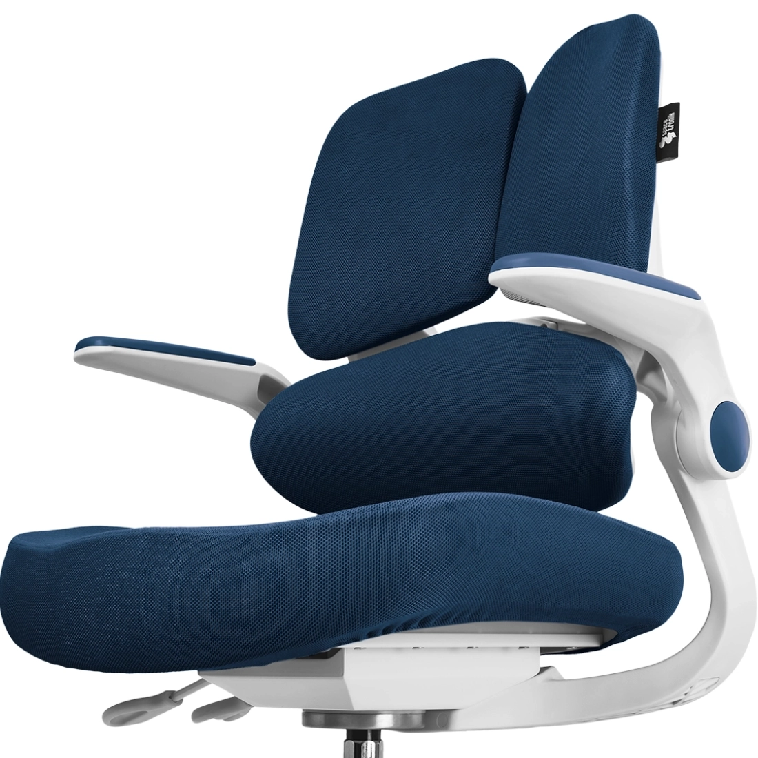 Verstellbarer elektrischer Kinderschreibtisch 112x60 cm Spacetronik XD mit zusätzlicher Ablage (weiß/blau)