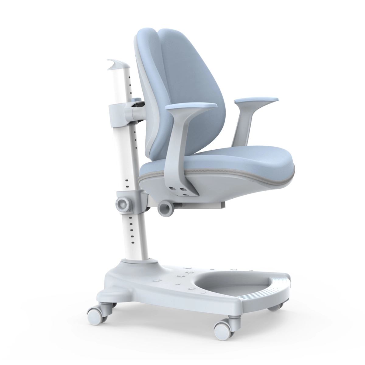 Trotz seiner vollen Funktionalität, der breiten Verstellmöglichkeiten und der Ausstattung ist der Stuhl leicht, verfügt über einen Griff und kann von Kindern problemlos bewegt werden. Die eingebauten Schwerkraftrollen hingegen sorgen für Sicherheit und verhindern, dass sich der Stuhl beim Sitzen unkontrolliert bewegt.