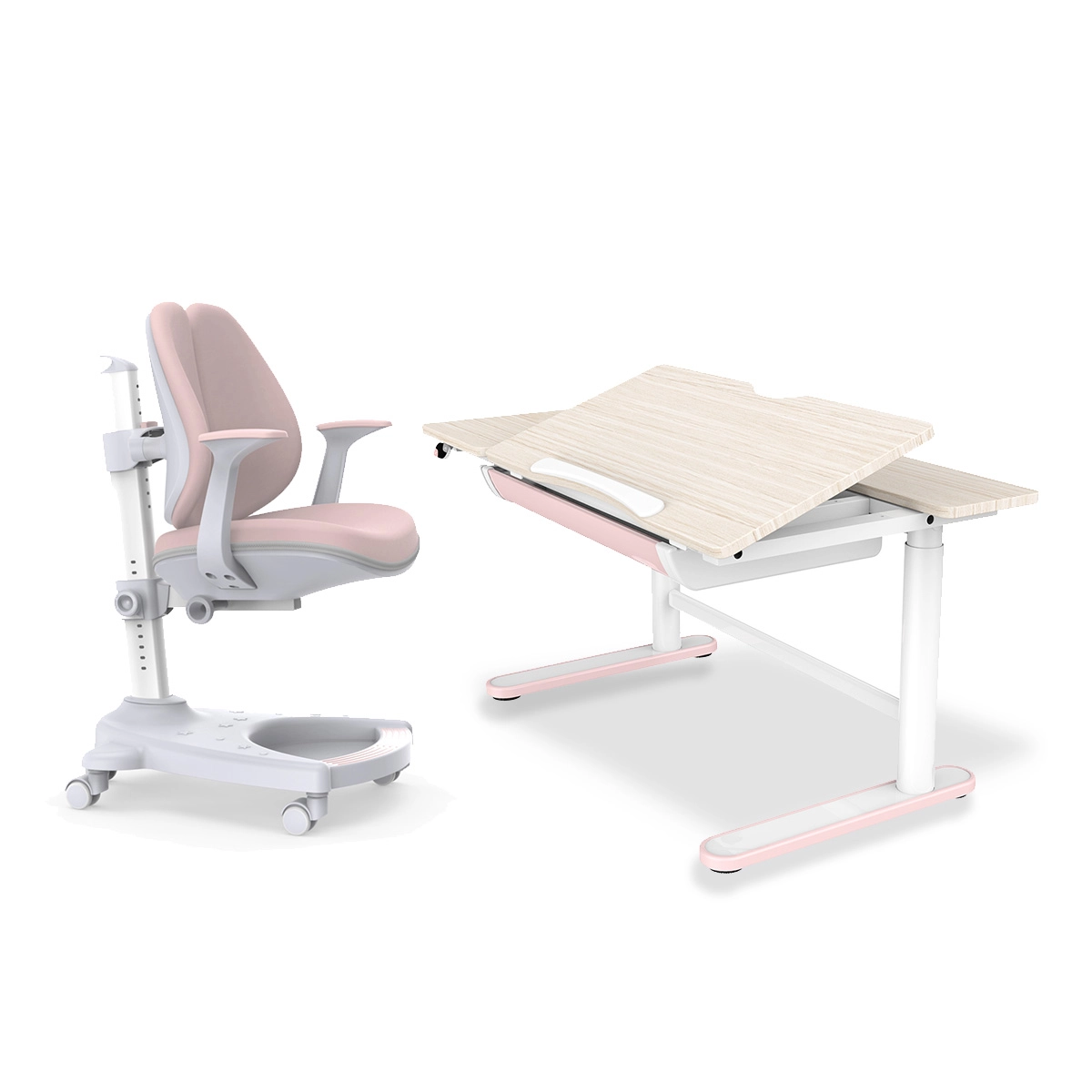 Sorgen Sie für den Komfort und die Gesundheit Ihres Kindes mit einem bequemen, verstellbaren Stuhl und Schreibtisch, der die Höhe des Bürostuhls und des Schreibtisches an die Körpergröße Ihres Kindes anpasst. Mit unserem Set ist es noch einfacher, die richtige Haltung zu finden, die sich positiv auf die Gesundheit der Wirbelsäule, die Konzentration und das Sehvermögen auswirkt.