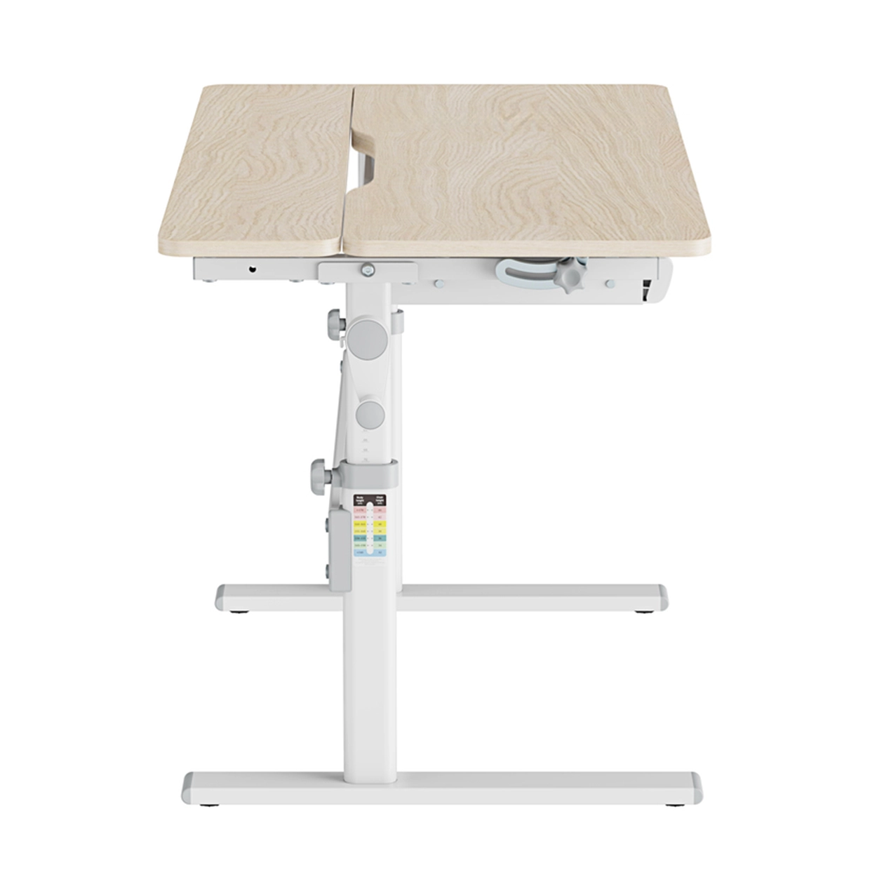 • Ein verstellbarer Kinderschreibtisch, der mit seinem Benutzer mitwächst. Stellen Sie die richtige Höhe der Tischplatte ein, um sie an die Körpergröße Ihres Kindes anzupassen, von 54 cm bis 76 cm. Tischplatte 100 x 60 cm. Weiße Farbe, holzfarbene Platte. H