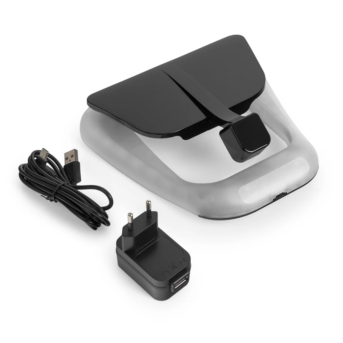Die Spacetronik Glow Two SC Monitor-Hintergrundbeleuchtung wird über das mitgelieferte USB-Kabel und den Netzadapter an eine Steckdose angeschlossen.