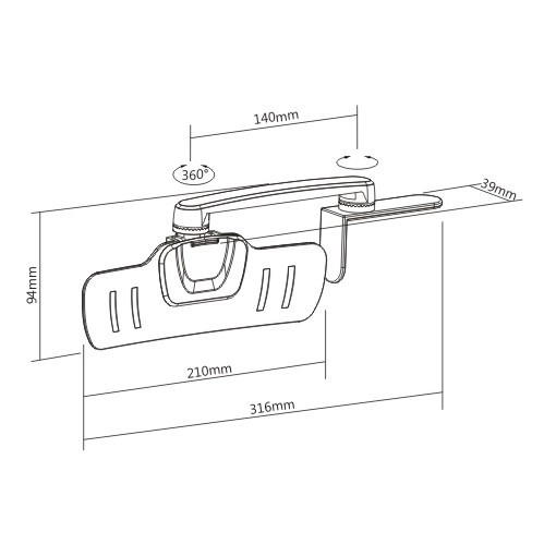 Die Monitorhalterung Document Clip hat kompakte Abmessungen von 316x39x94mm (12,4 "x1,5 "x3,7"), so dass sie nicht zu viel Platz auf Ihrem Schreibtisch einnimmt. Trotz ihres robusten Designs ist die Halterung mit einem Gewicht von nur 81 g (0,18 lbs) extrem leicht und lässt sich daher einfach transportieren und installieren.
