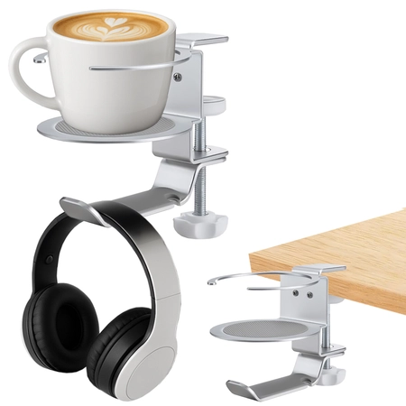 Der Kopfhörerhalter ist mit einem Mechanismus ausgestattet, der es ermöglicht, ihn um 360 Grad zu drehen. So können Sie ihn nach Belieben positionieren, um ihn ganz an Ihren Platz anzupassen. Der Getränkehalter hingegen ermöglicht es Ihnen, eine Tasse, Thermoskanne, Dose, Flasche oder einen anderen Behälter mit einem Durchmesser von bis zu 70 mm anzubringen. Darüber hinaus können Sie nicht nur Ihre Kopfhörer, sondern beispielsweise auch Taschen, Hüte oder Regenschirme an den Kopfhörerhalter hängen. Die maximale Tragfähigkeit des SPB-020S Kopfhörer- und Becherhalters beträgt 5 kg.