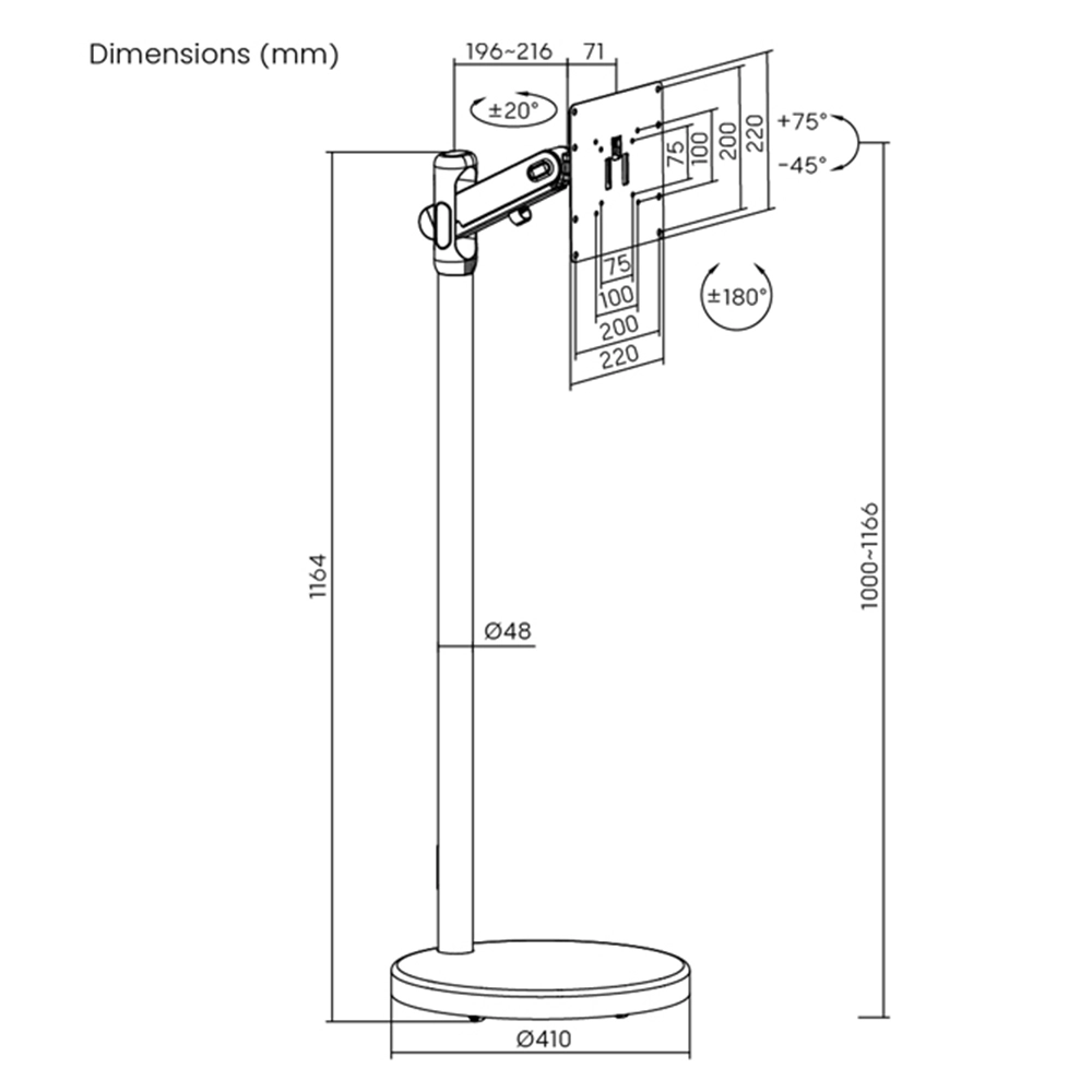 410x410x1222 mm - Zakres rozmiaru ekranu: