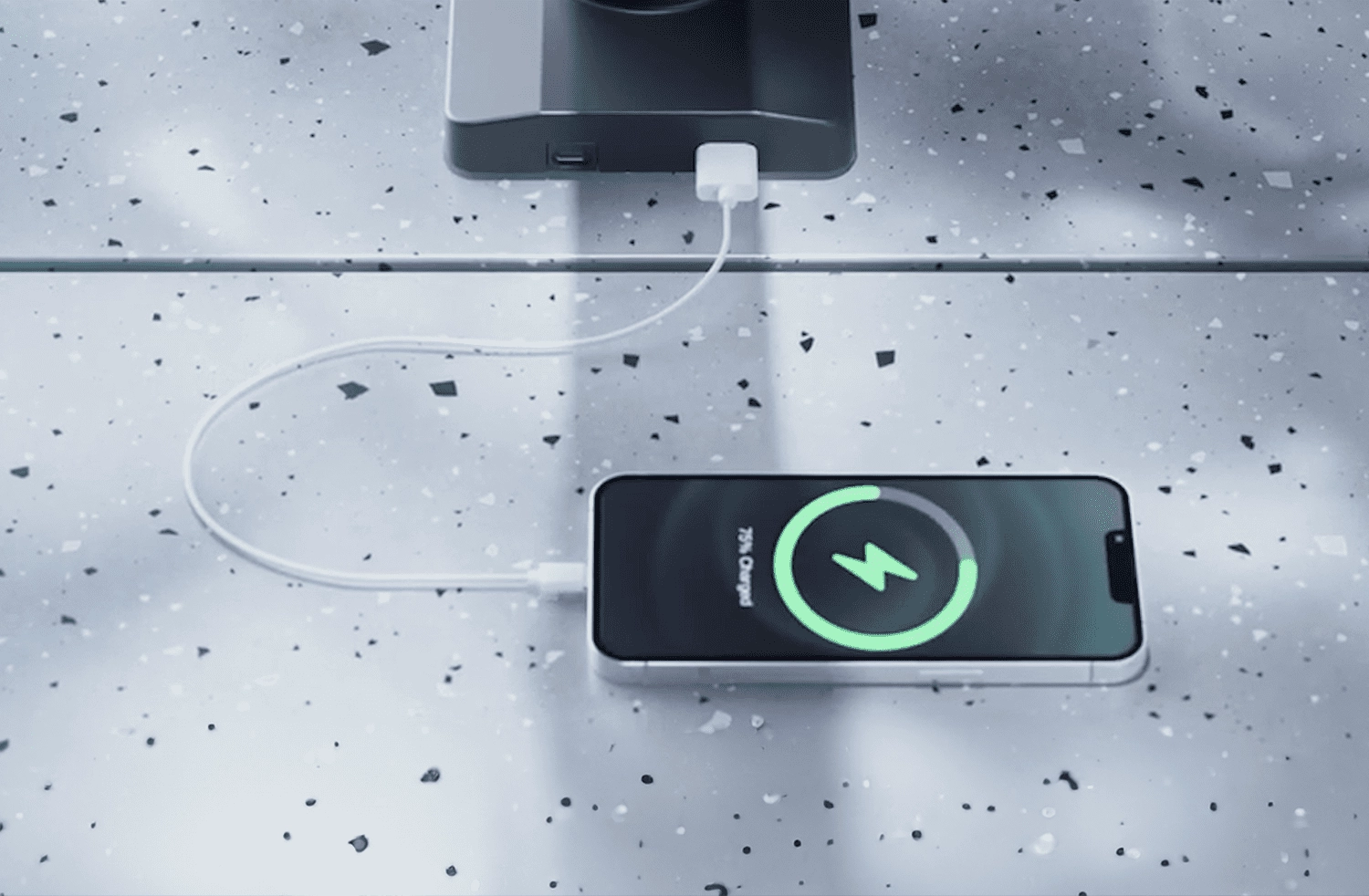 Die Spacetronik SPA-D110B Monitorhalterung bietet nicht nur eine große maximale Belastbarkeit und die Möglichkeit, die Position des Bildschirms zu verstellen. In seinem Sockel sind auch zwei USB-Anschlüsse (USB-A und USB-C) integriert. Damit können Sie Ihr Handy aufladen, ohne den Schreibtisch verlassen zu müssen. Darüber hinaus werden auch die USB-Anschlüsse Ihres Computers nicht mehr belegt. So können Sie diese für etwas anderes nutzen, zum Beispiel für den Anschluss eines Pads.