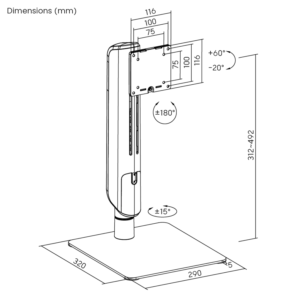 Uchwyt SPA-B111 oferuje pełen zakres regulacji – możliwość obrotu ekranu o 180° (w lewą i prawą stronę), nachylenia oraz rotacji. Dzięki temu monitor można łatwo dostosować do preferencji użytkownika, niezależnie od zastosowania. Obrót, pochylenie i rotacja zapewniają optymalny kąt widzenia w każdej sytuacji.