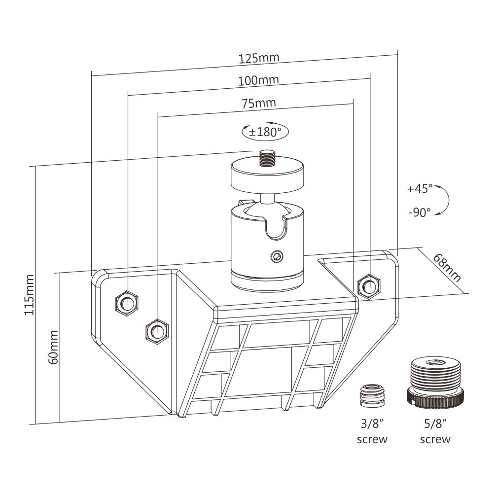 - Typ der Gerätehalterung: 1/4'', 3/8'', 5/8''