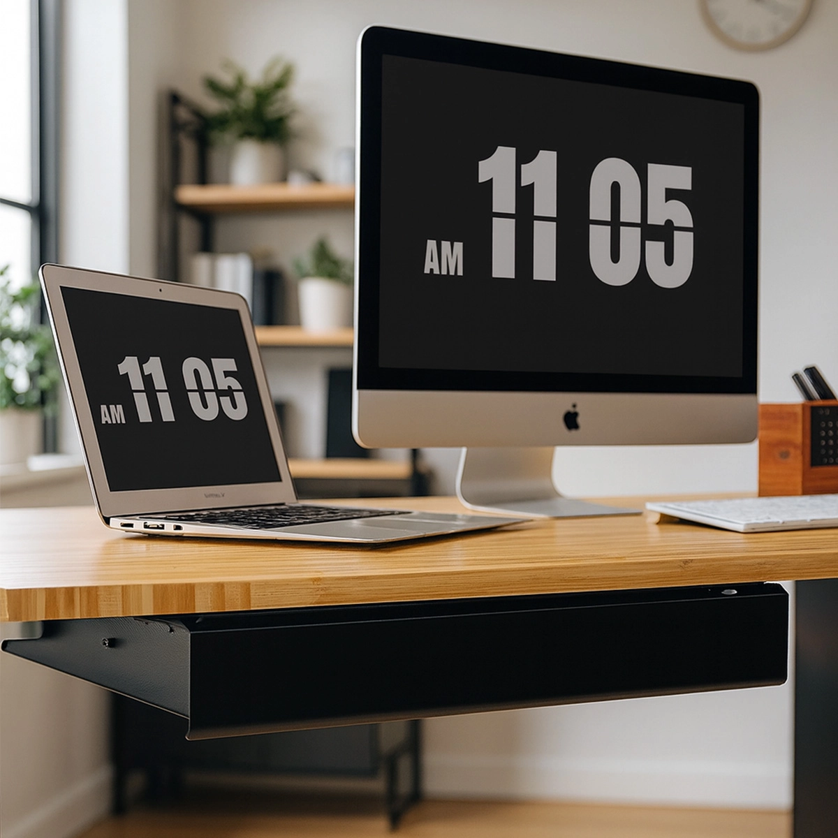 Bereichern Sie Ihren elektrischen Schreibtisch um ein praktisches Element - die Untertischschublade. Mit ihrem modernen, zeitlosen Design passt die Schublade in jede Einrichtung und zu Ihrem Schreibtisch. Sie ist mit den meisten verstellbaren elektrischen Schreibtischen kompatibel, aber auch mit traditionellen Schreibtischen, deren Platte mindestens 24 cm tief ist.