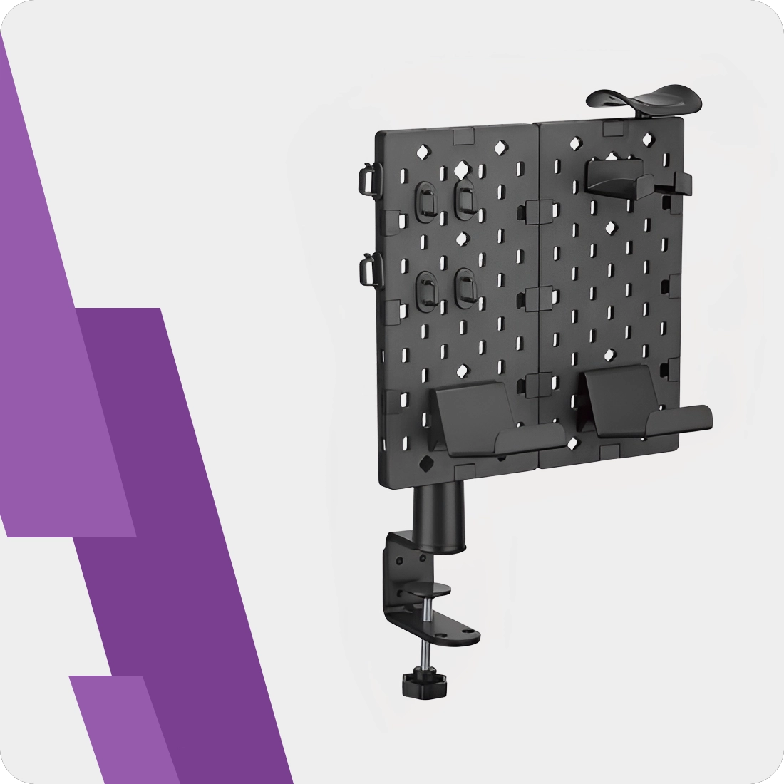 Dank der Vielseitigkeit der Komponenten, die für die Konstruktion des Halters verwendet wurden, ist er auch für Nicht-Gamer geeignet. Die verschiedenen Arten von Halterungen ermöglichen es Ihnen, verschiedene Geräte darin zu platzieren. Seien es Kopfhörer, Notebooks, CDs, Bücher oder sogar eine Blume im Topf. So findet jeder, der Zeit am Schreibtisch verbringt, seine eigene Verwendung für einen Schreibtischhalter. Außerdem wird sich das moderne Design positiv auf die Einrichtung Ihres Zimmers auswirken. Der Halter ist schwarz gefärbt, so dass er sich nahtlos in verschiedene Interieurs einfügt.